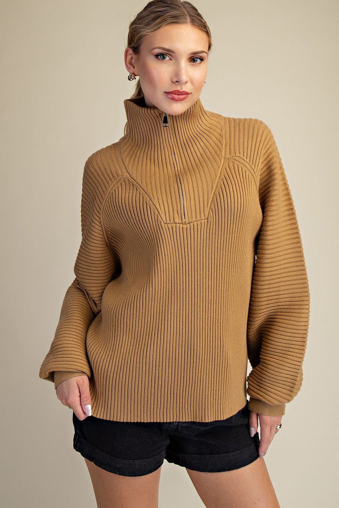 Front Zip Sweater in Beige