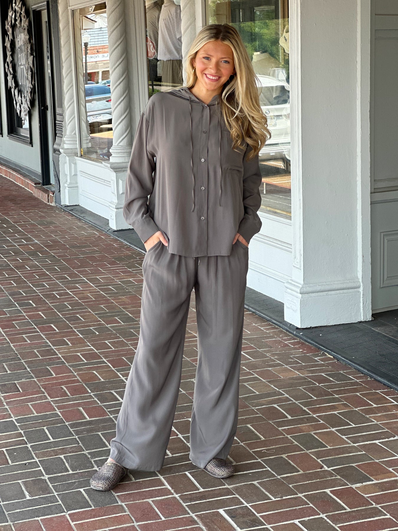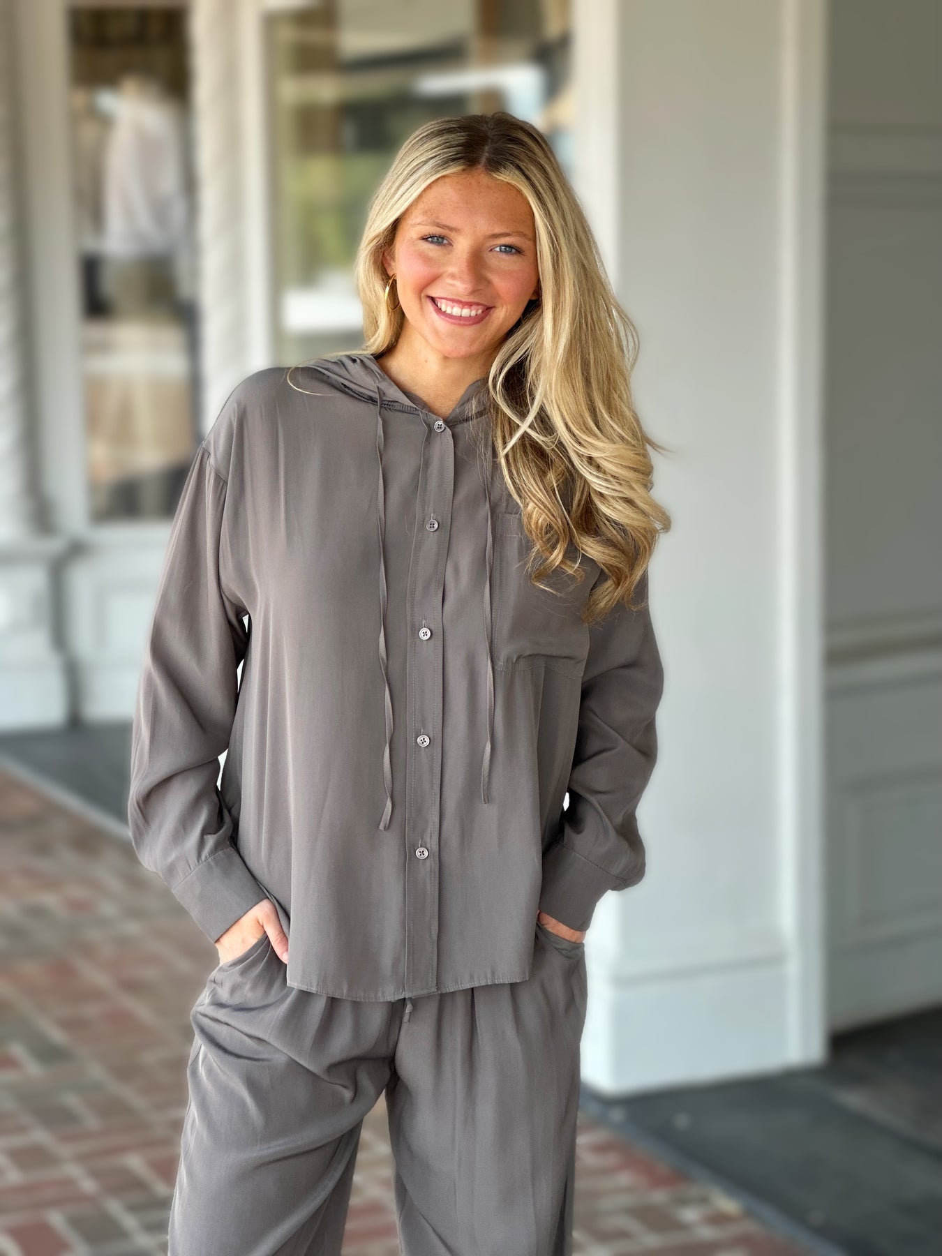 Lola + Sophie Satin Hoodie in Steel