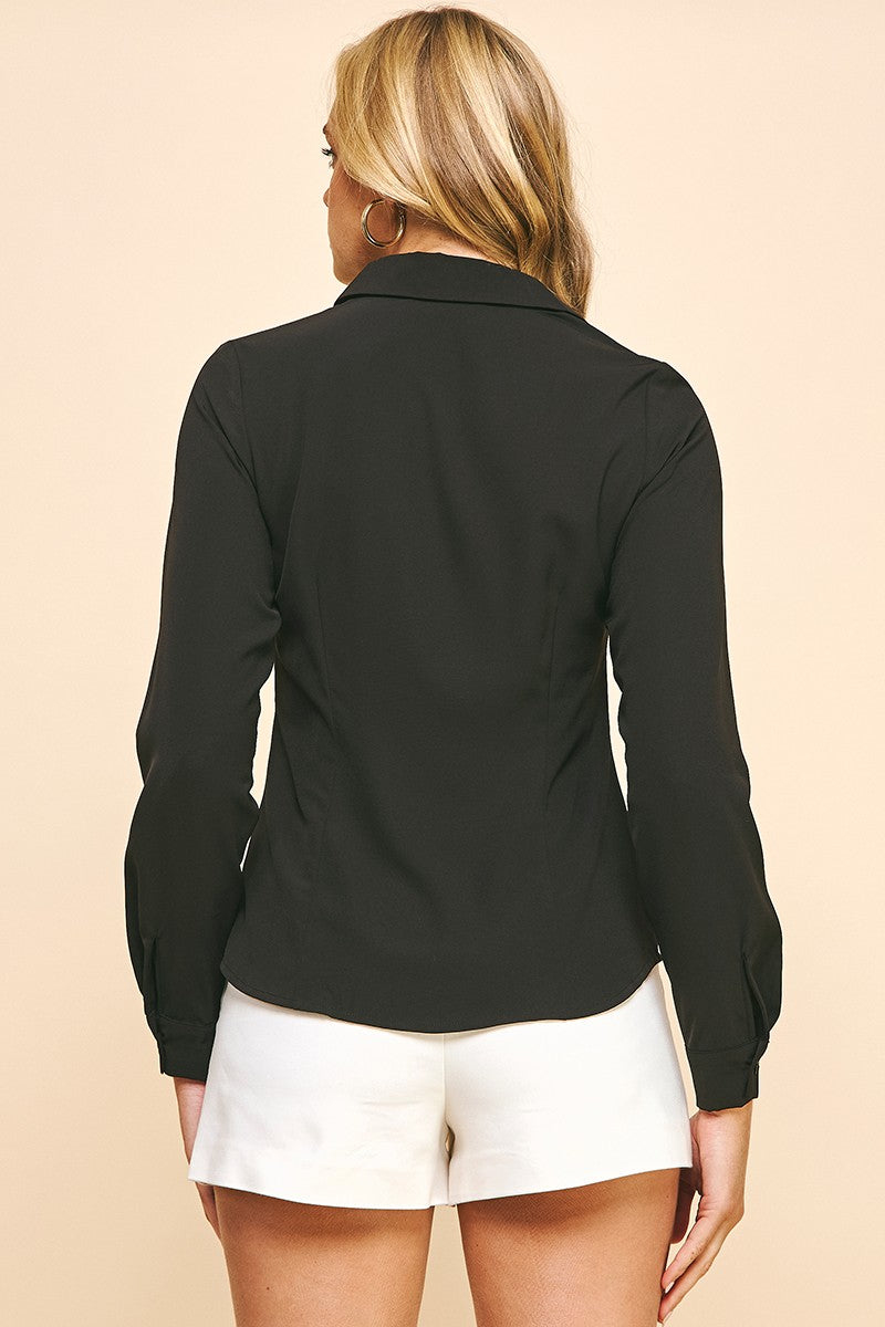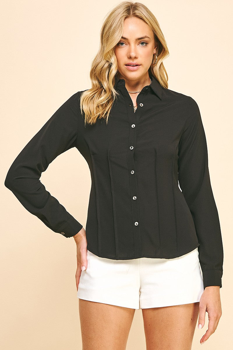 BUTTON DOWN SHIRT PINTUCK DETAIL AT FRONT BASIC COLLAR