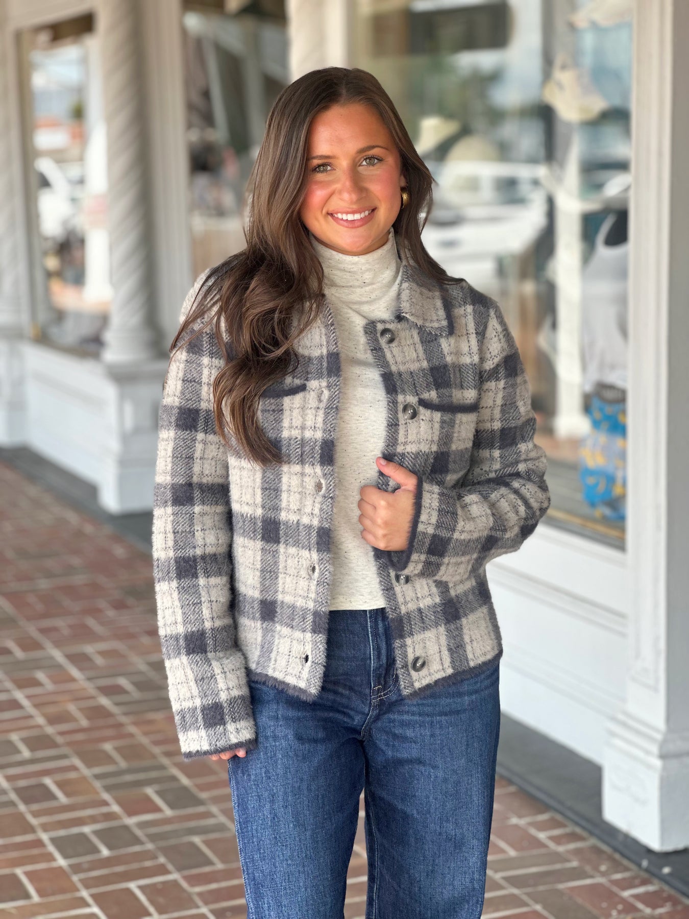 Plaid Stripe Jacket in Charcoal