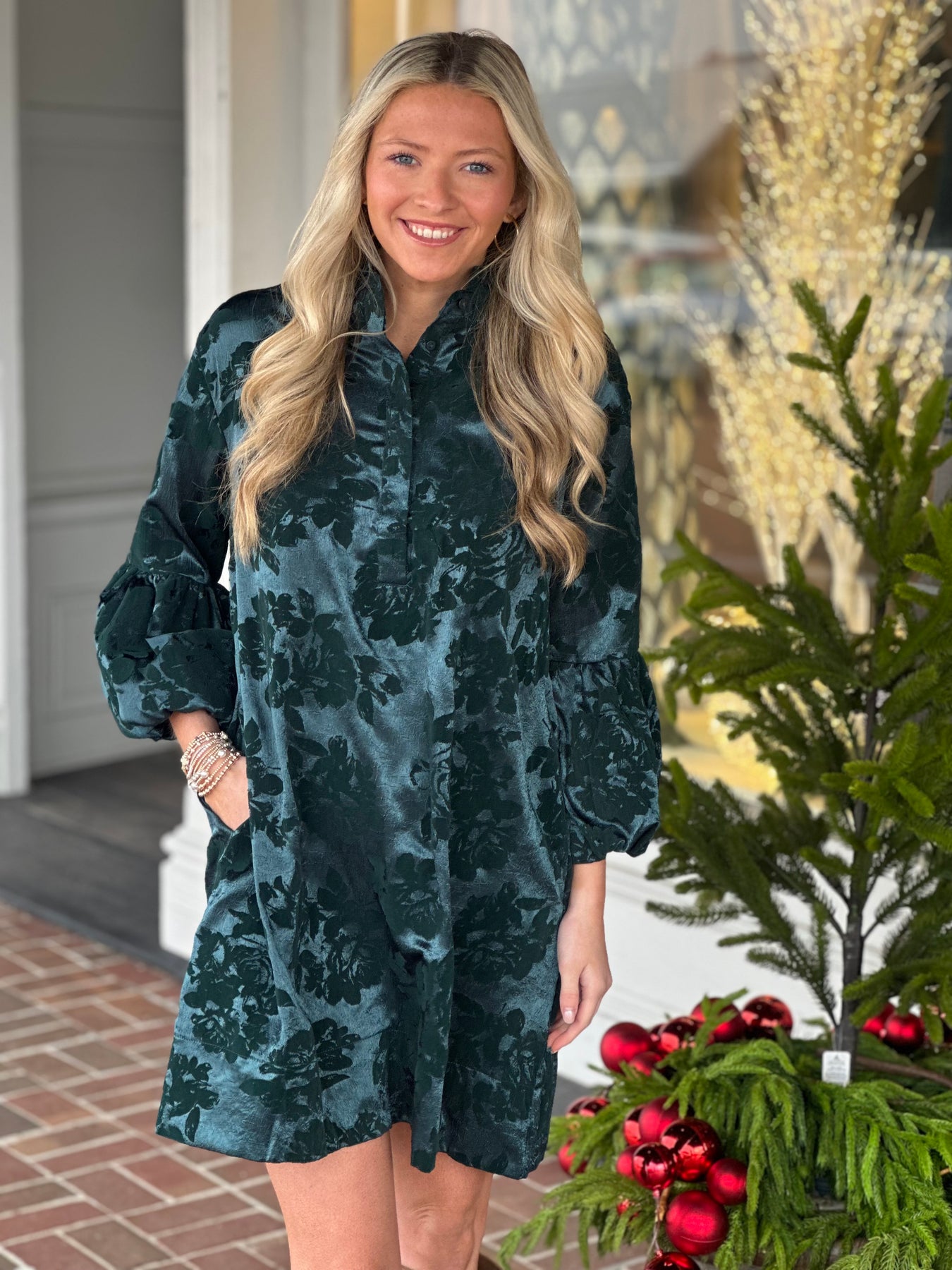 Ruffle Neck Puff Sleeve Dress in Green GD9443