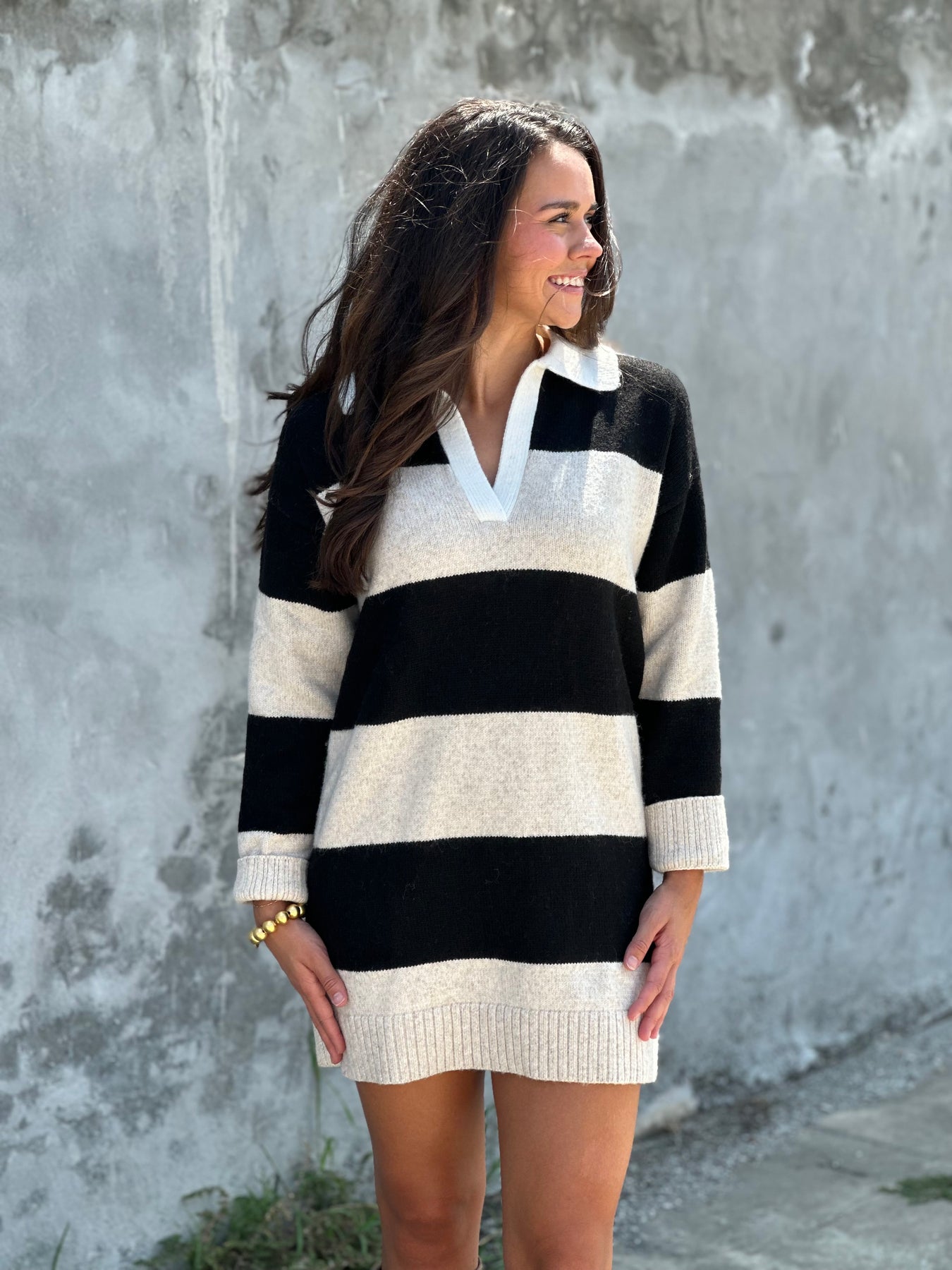 Sanctuary Polo Striped Sweater Dress in Heather Pearl W/ Black