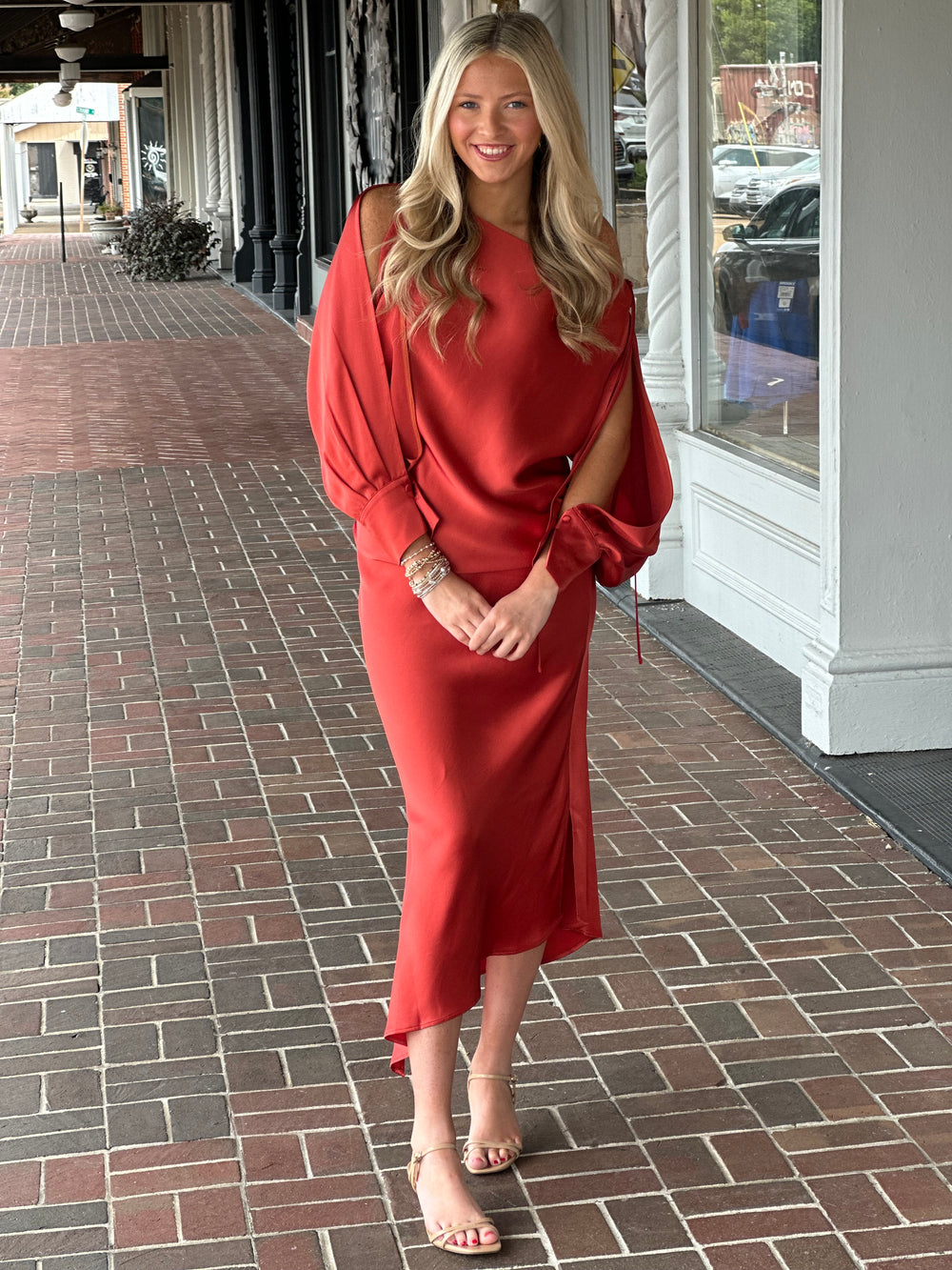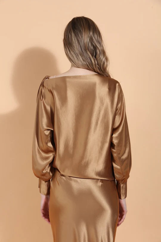 Asymmetrical Hem Satin Slip Skirt in Antique Gold