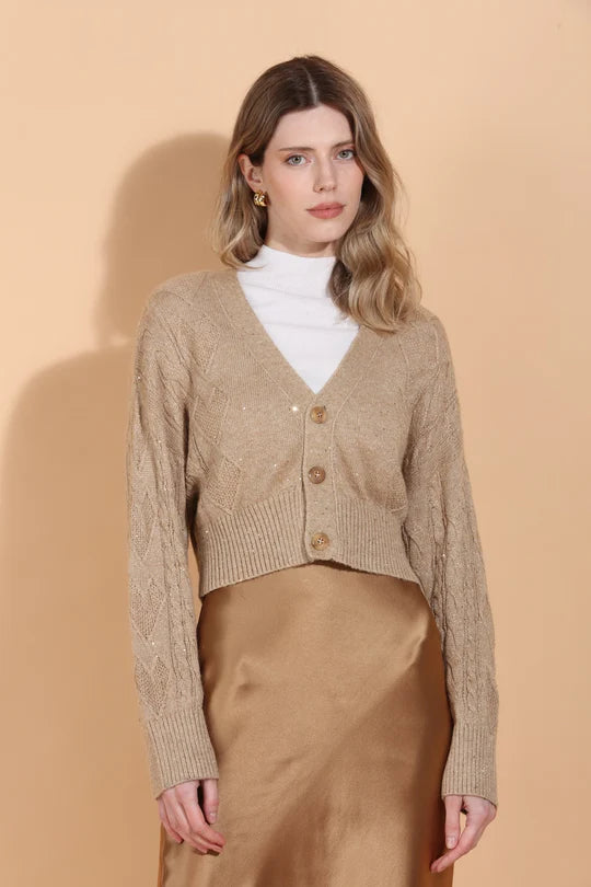 Tribal Double Knit Collared Sweater Cardigan in Moonstone