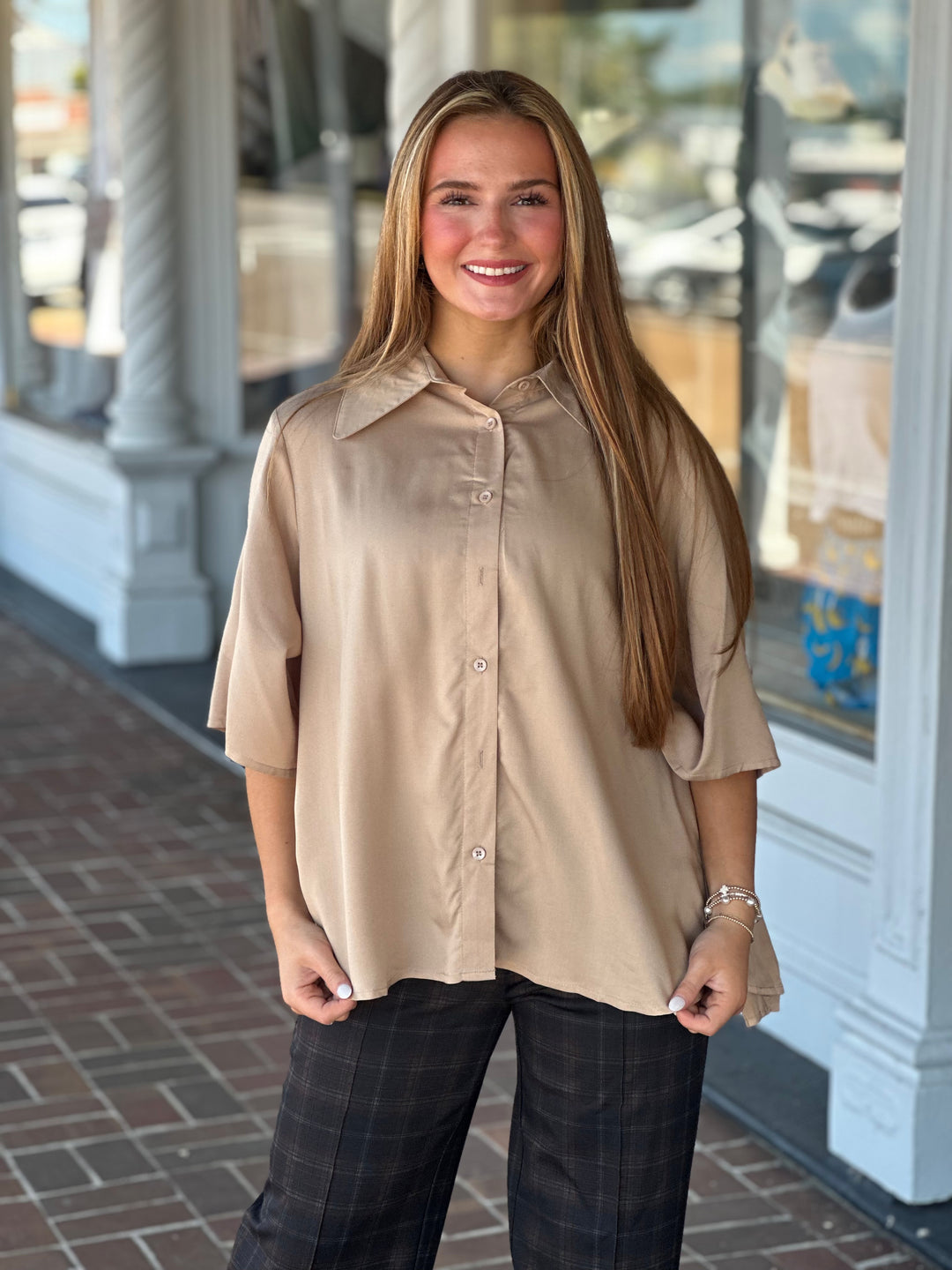 Saige Button Top in Truffle Cream