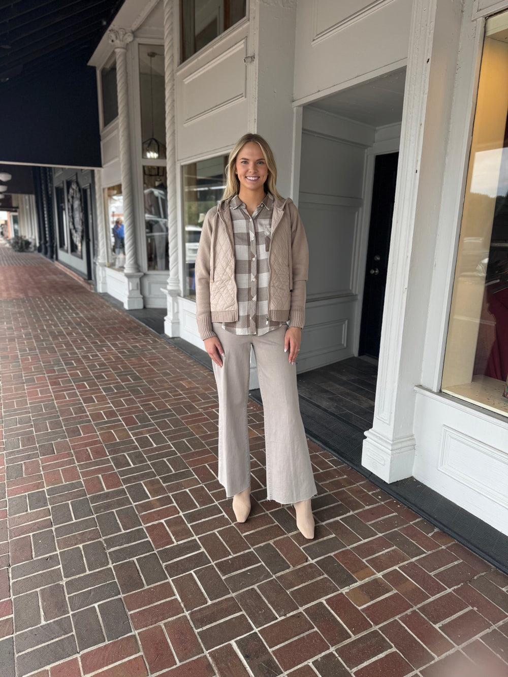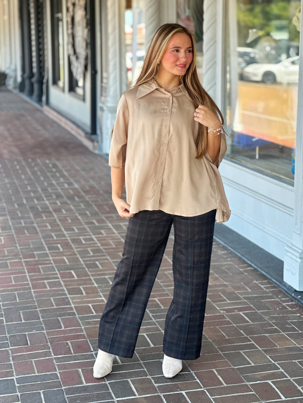Dylan Taylor Plaid Top in Taupe