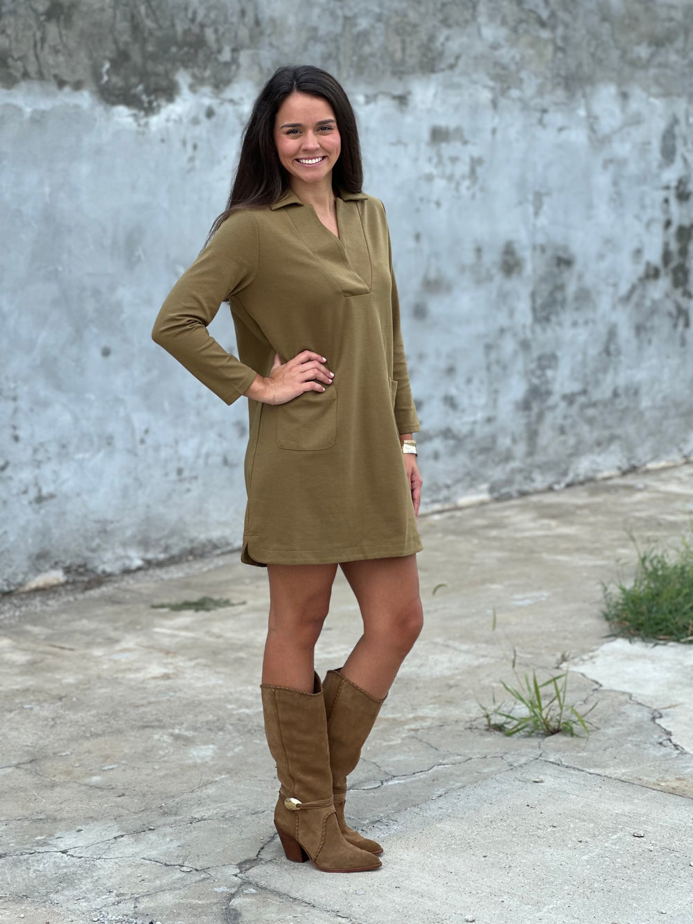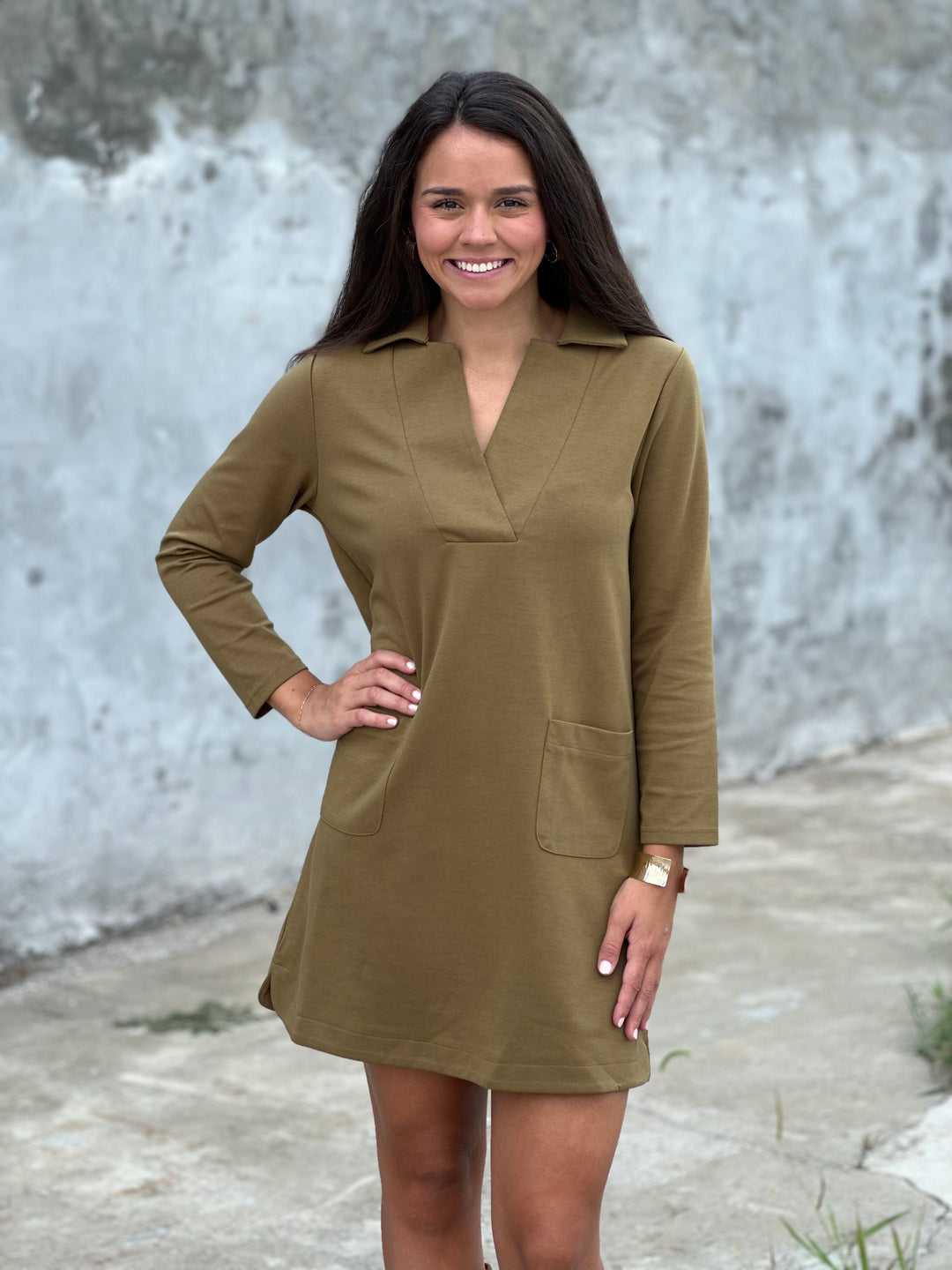 Perre Mock Neck Khaki Color-block Black Sheath Dress