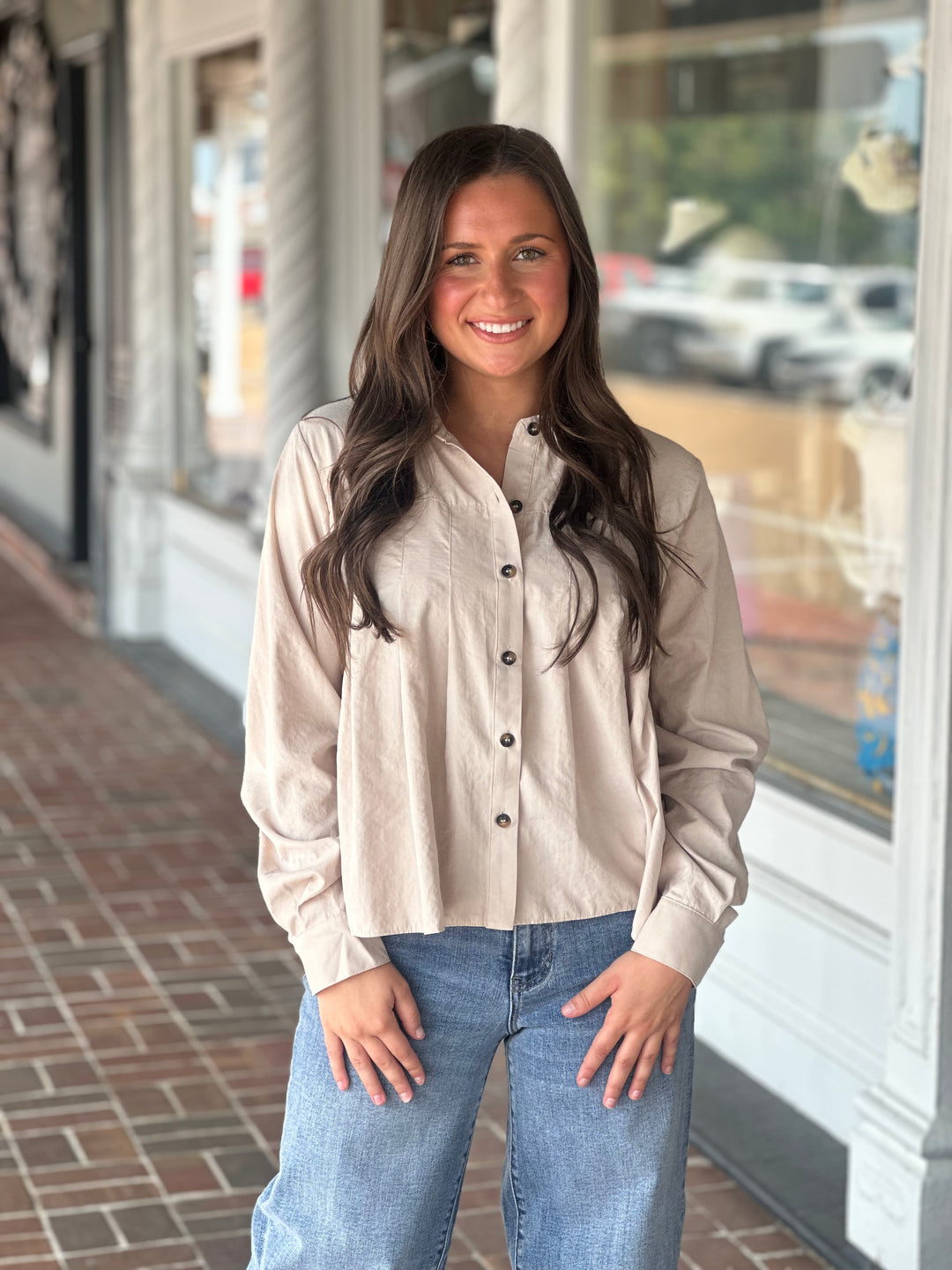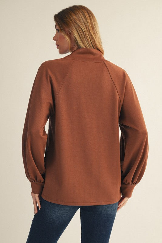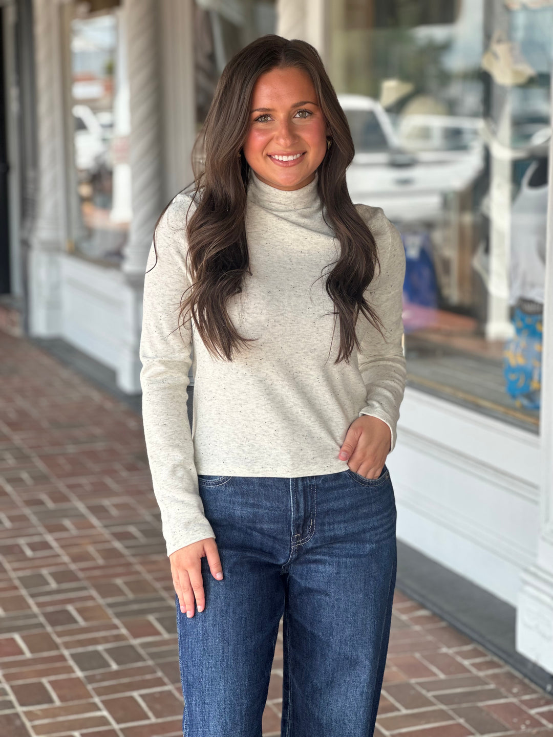 Heather Oatmeal Fitted Long Sleeve Mock Neck Top