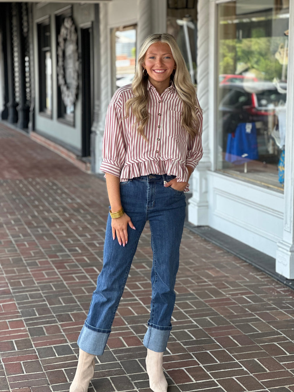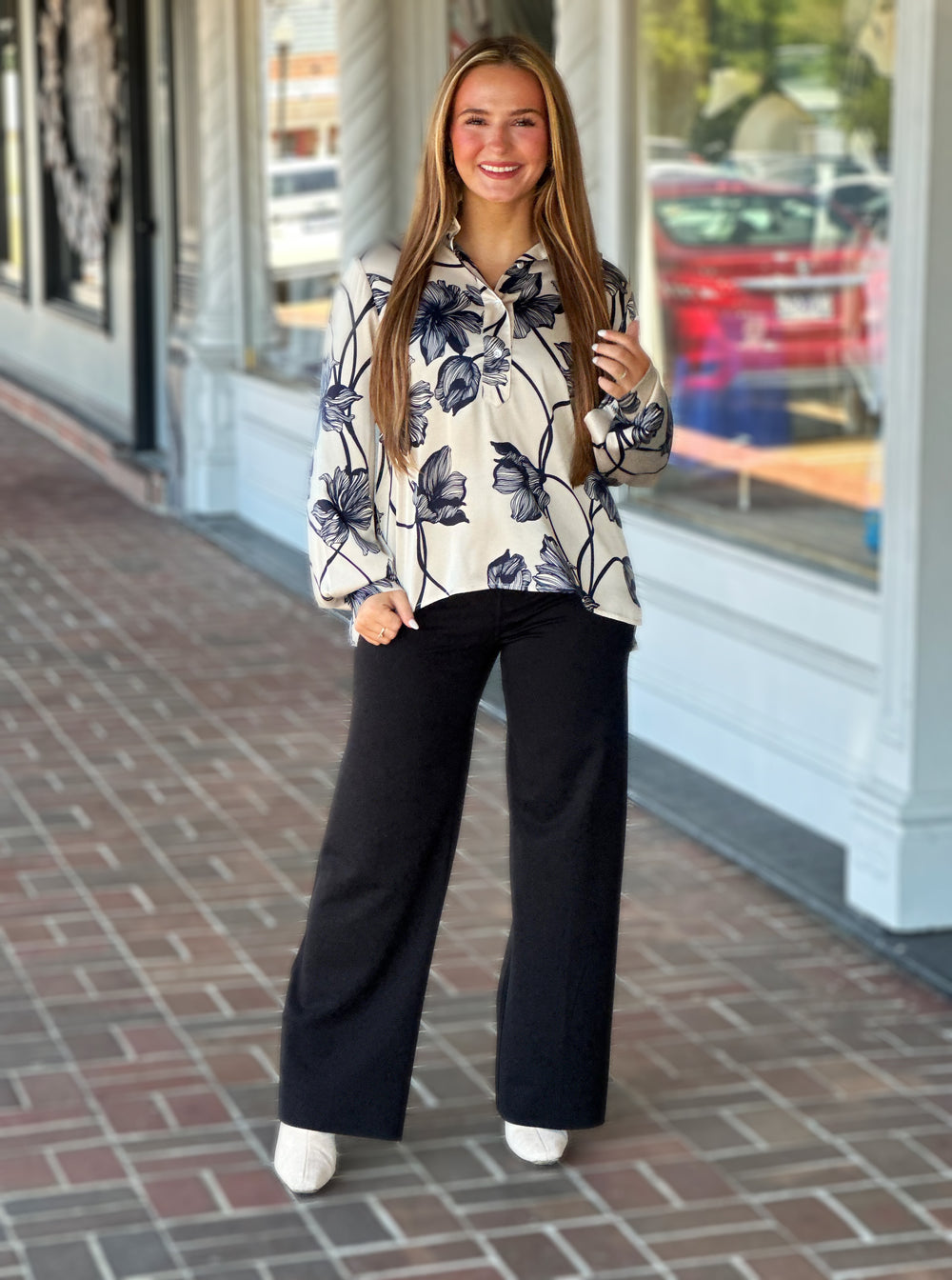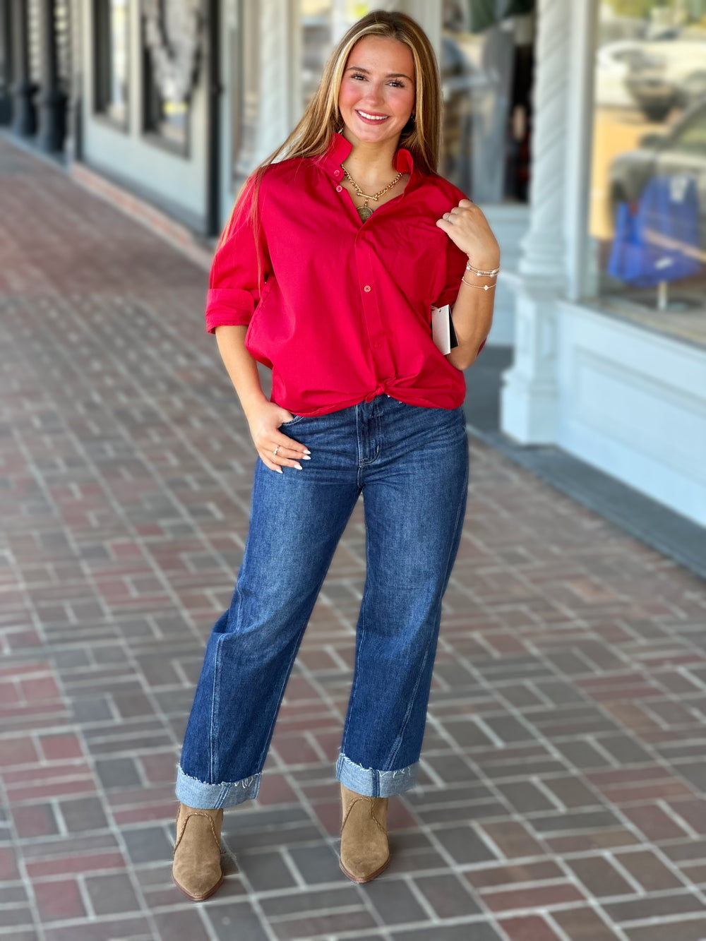 French Dressing Pull-On Wide Leg Denim in Dark Rinse