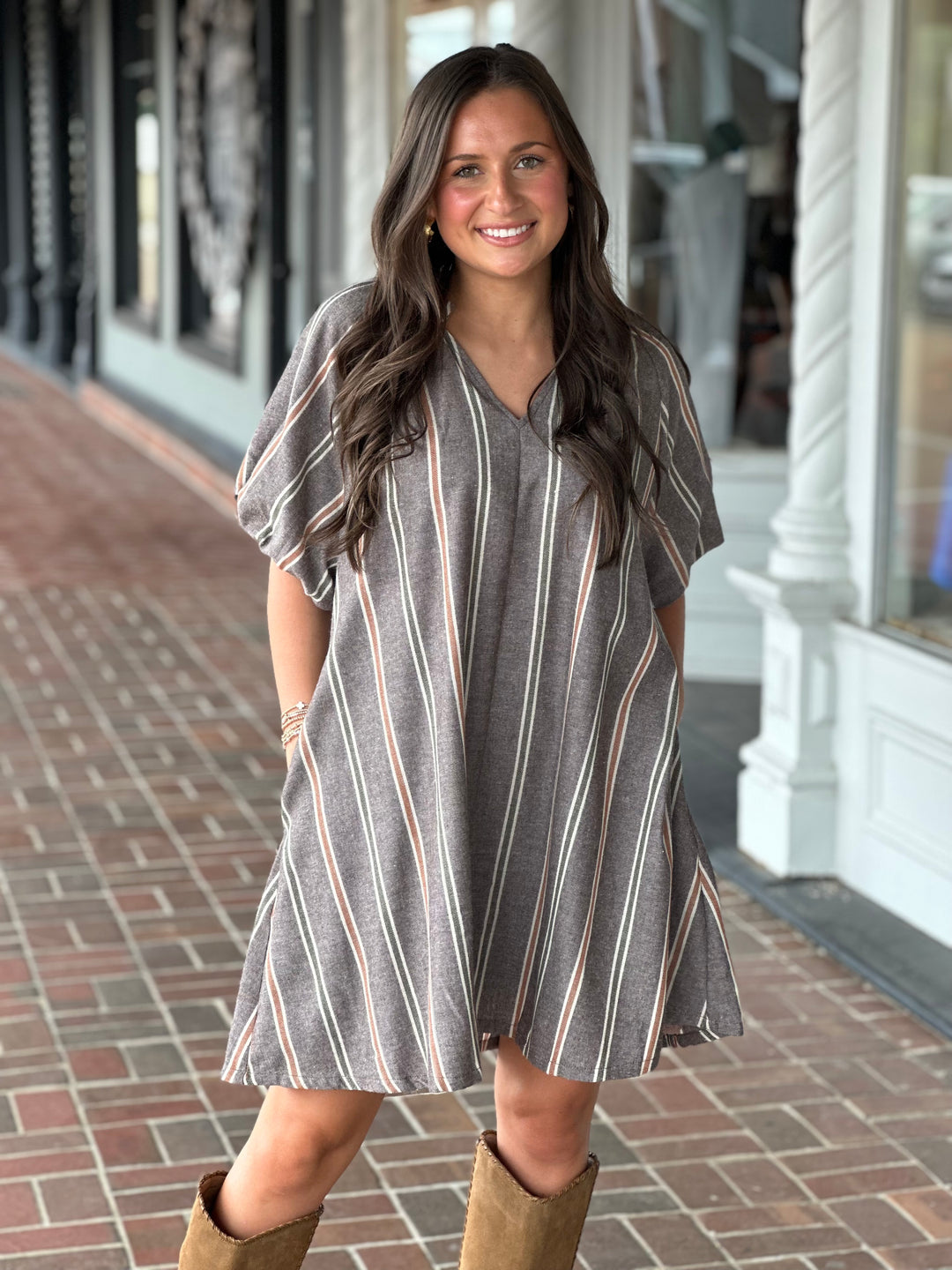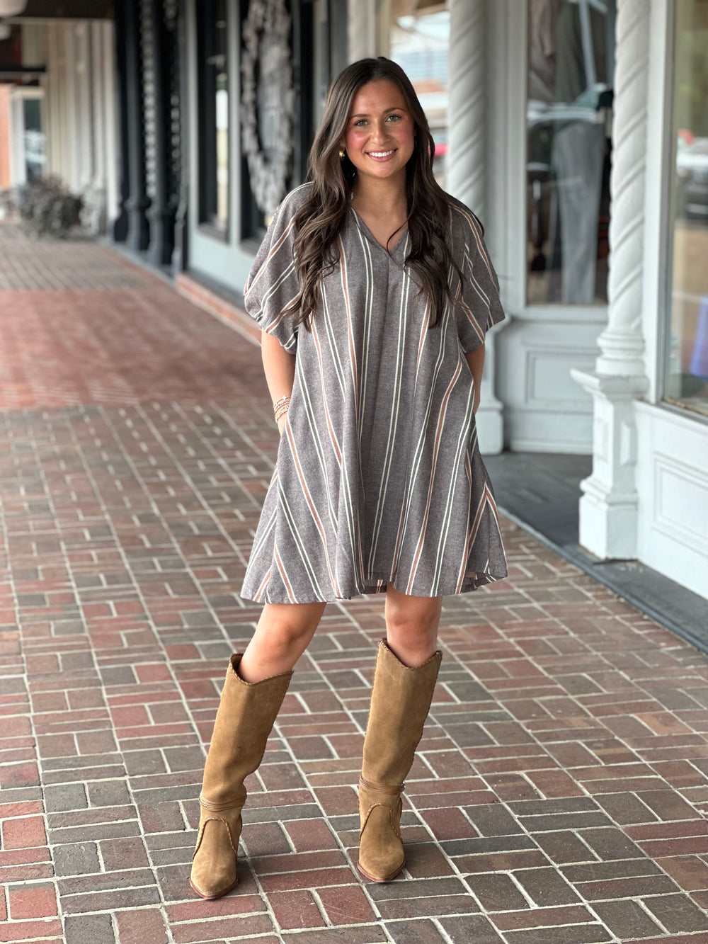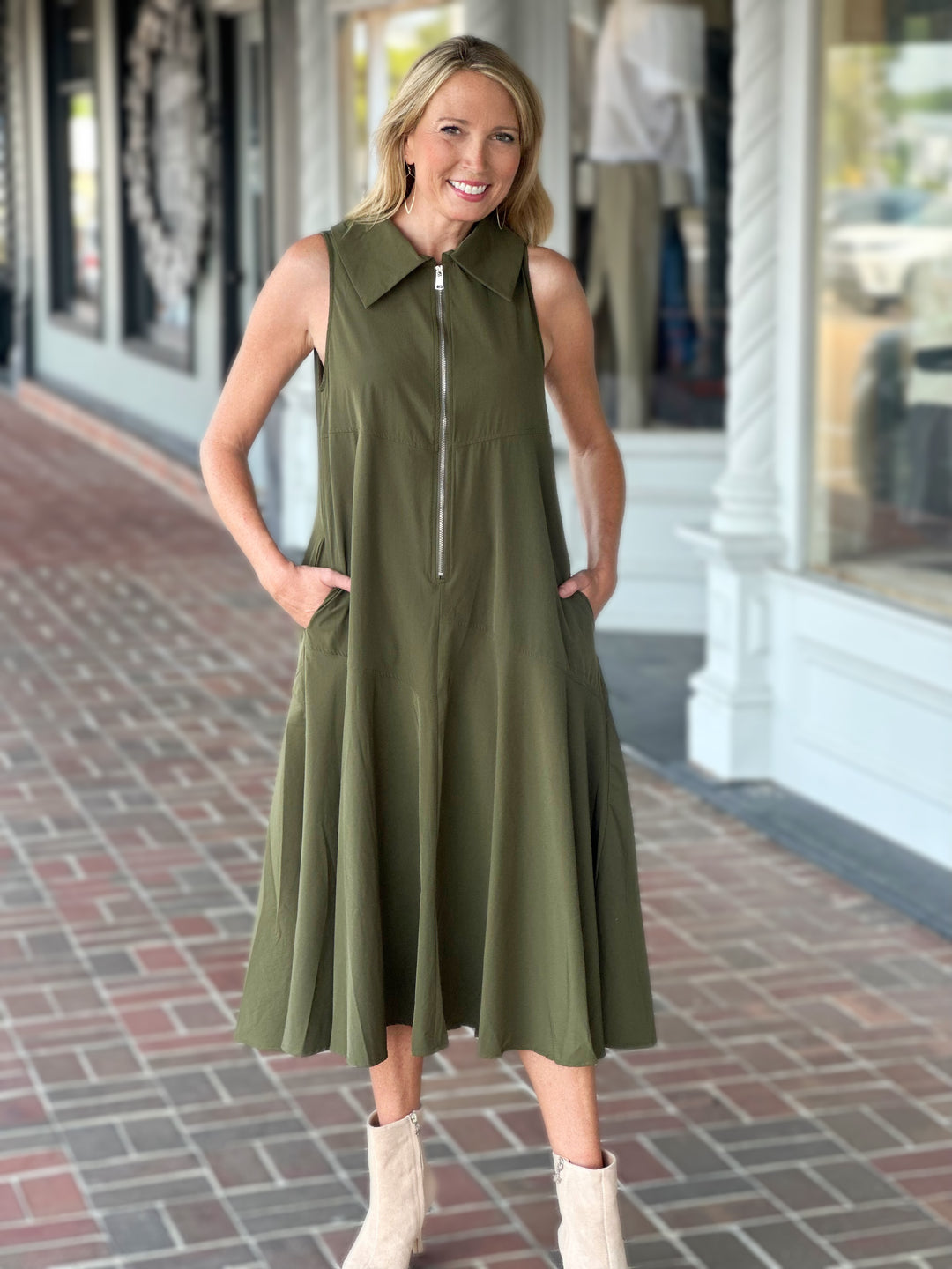 Aurora Stretch V-Neck Suede Dress in Khaki
