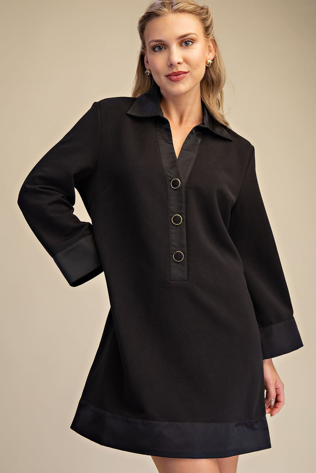 Collar Neck Long Sleeve Mini Dress in Burgundy