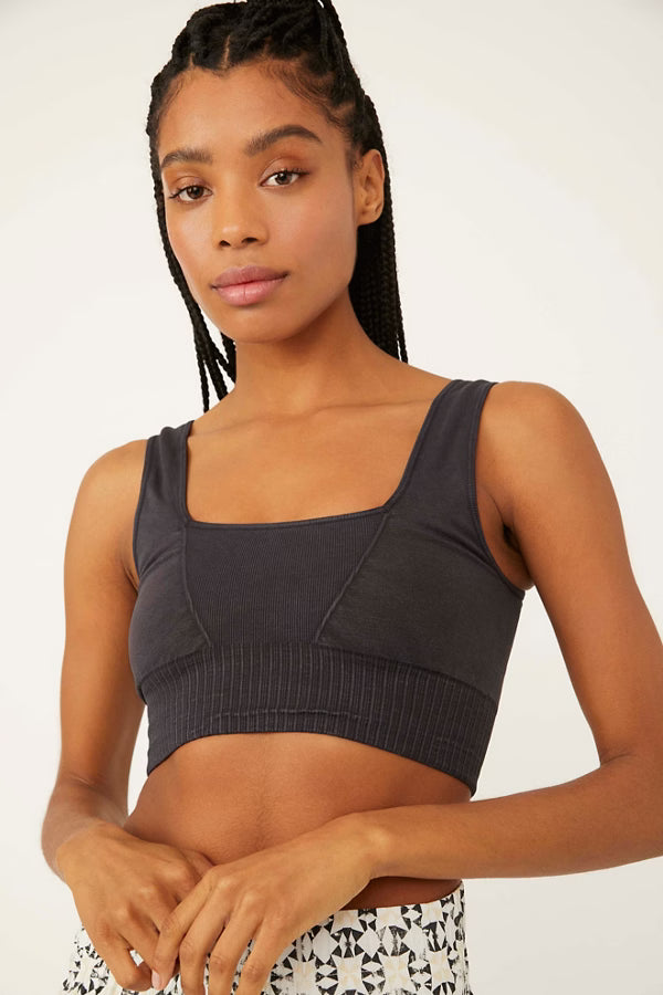 Free People Movement Square Neck Good Karma Bra in Washed Black