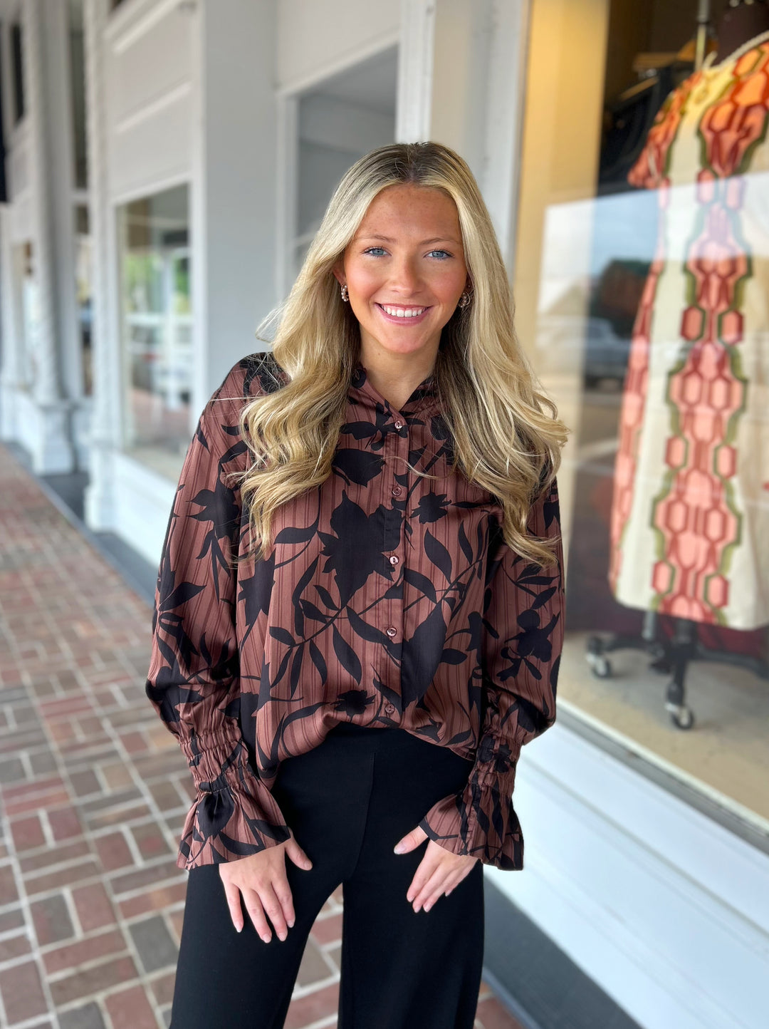 Never Hold Back Brown Floral Top