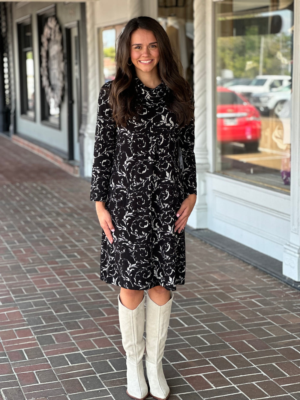 Habitat Jacquard Scroll Pleat Front Dress in Dove