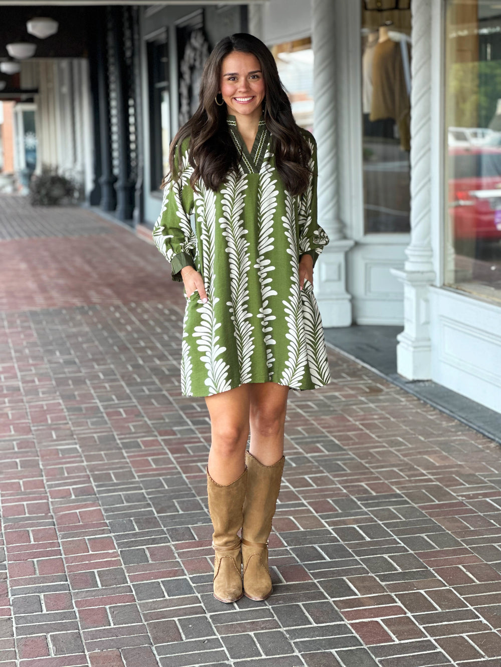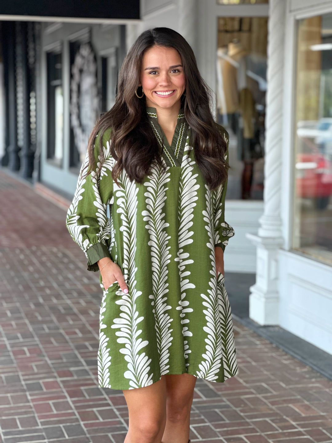 Olive Sea Tendril Printed Dress