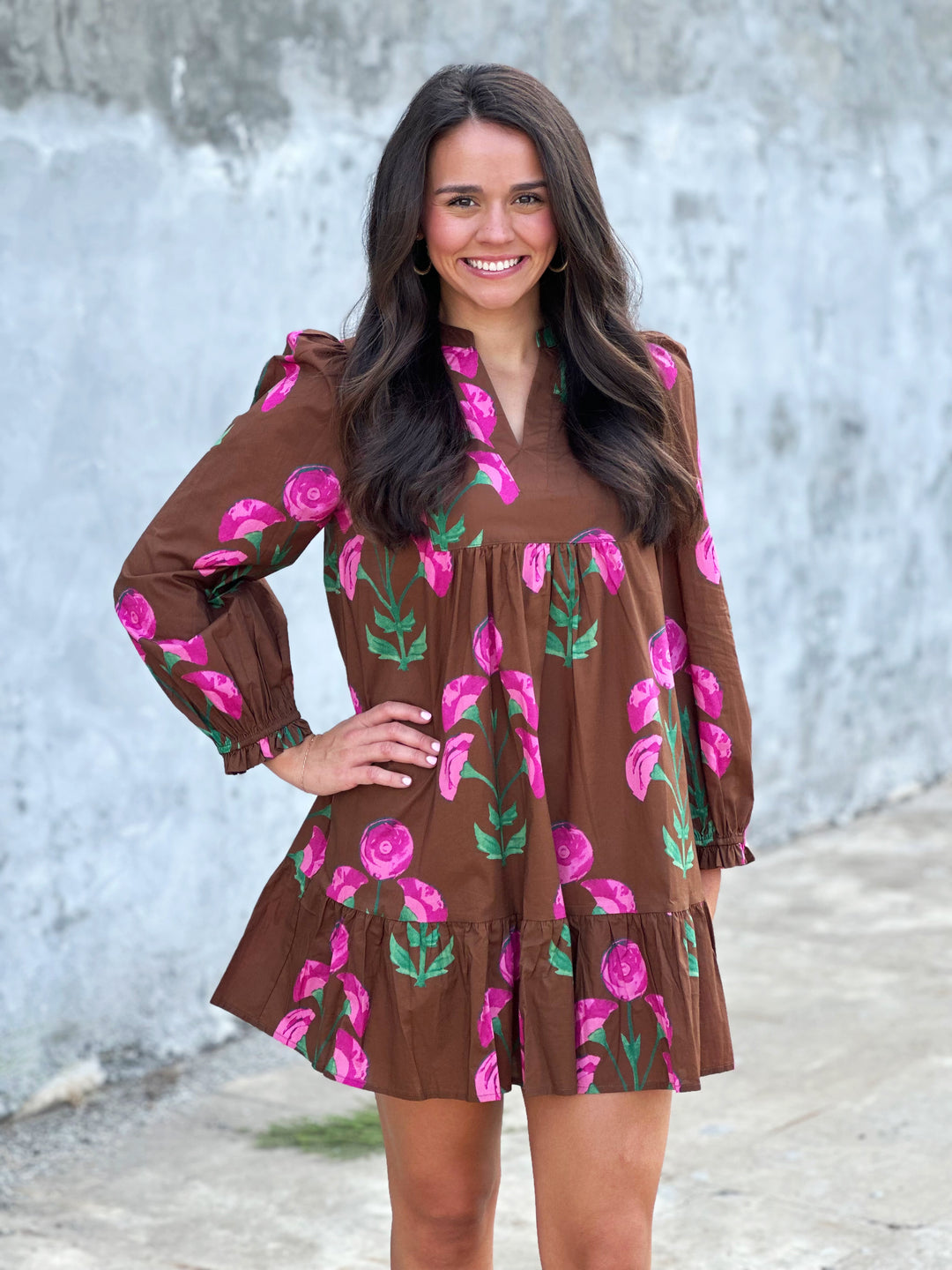 Brown Mix Floral Printed Dress
