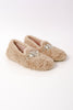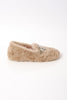 Lounge in luxury with these rhinestone-encrusted fuzzy loafer slippers.