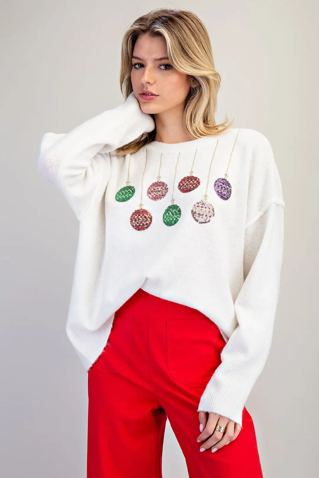 Cream Drop Shoulder With Red Bow Detail Sweater