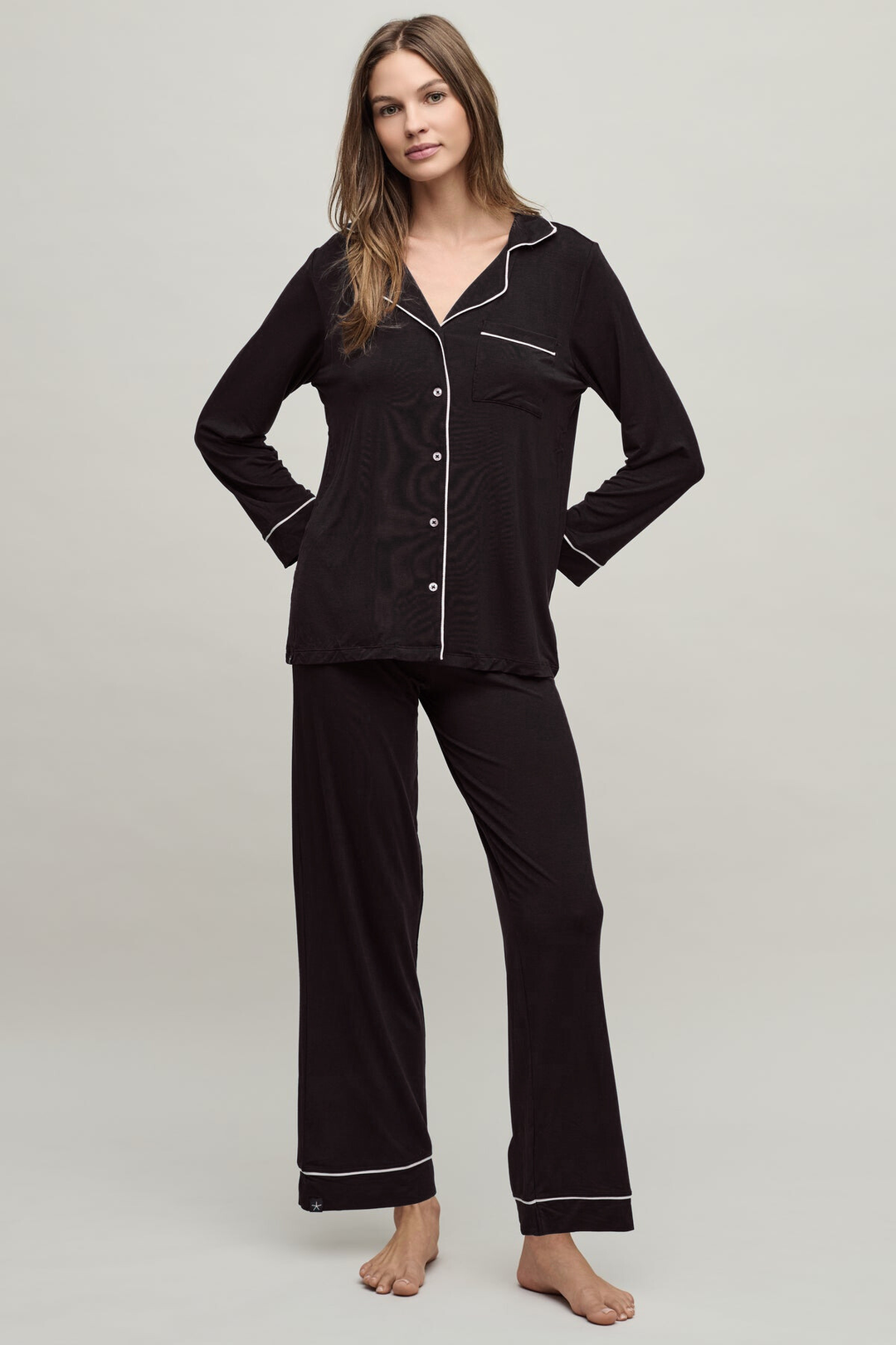 Barefoot Dreams Luxe Milk Jersey® Piped Pajama Set in Black