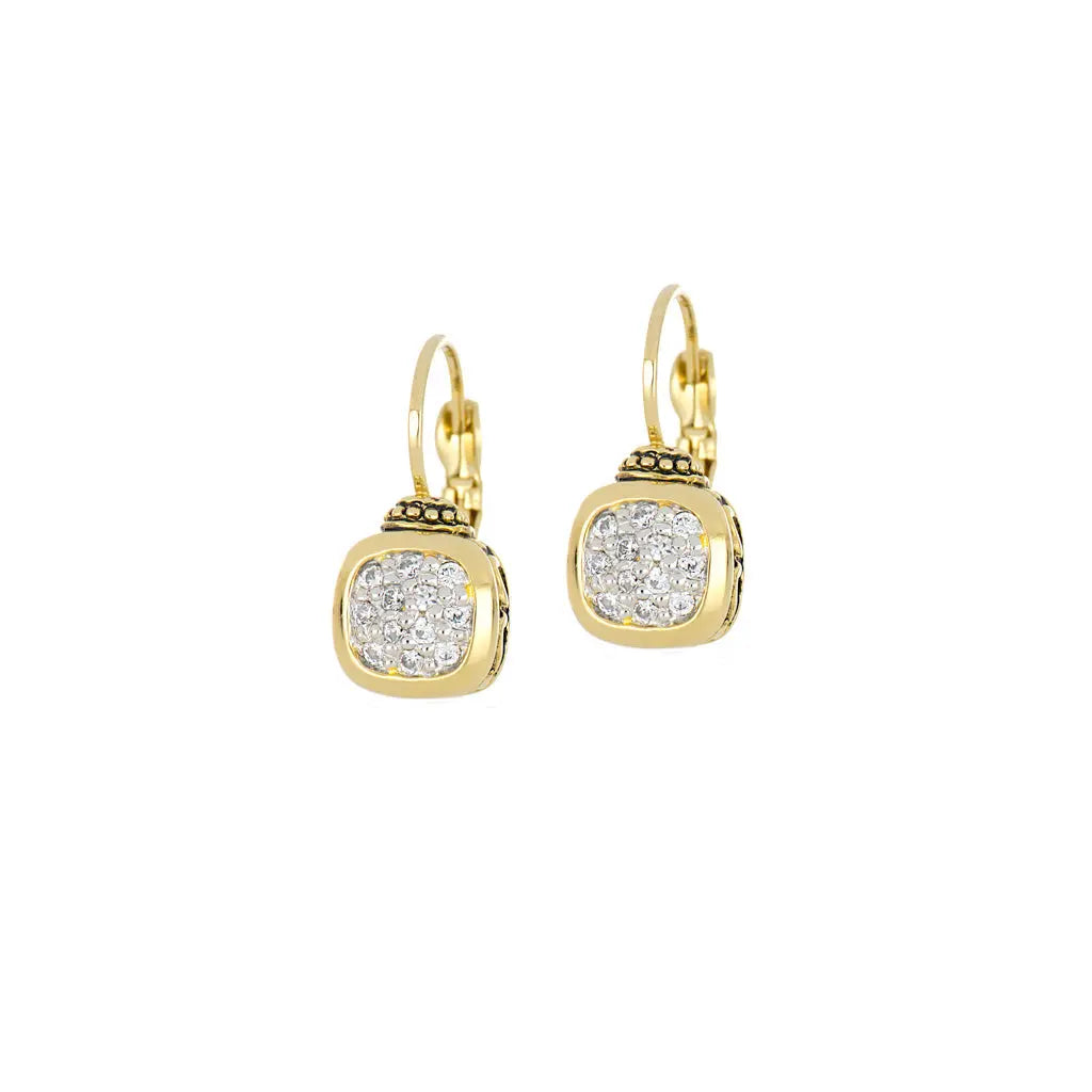 John Medeiros Nouveau Collection - Cushion Pavé Gold French Wire Earrings