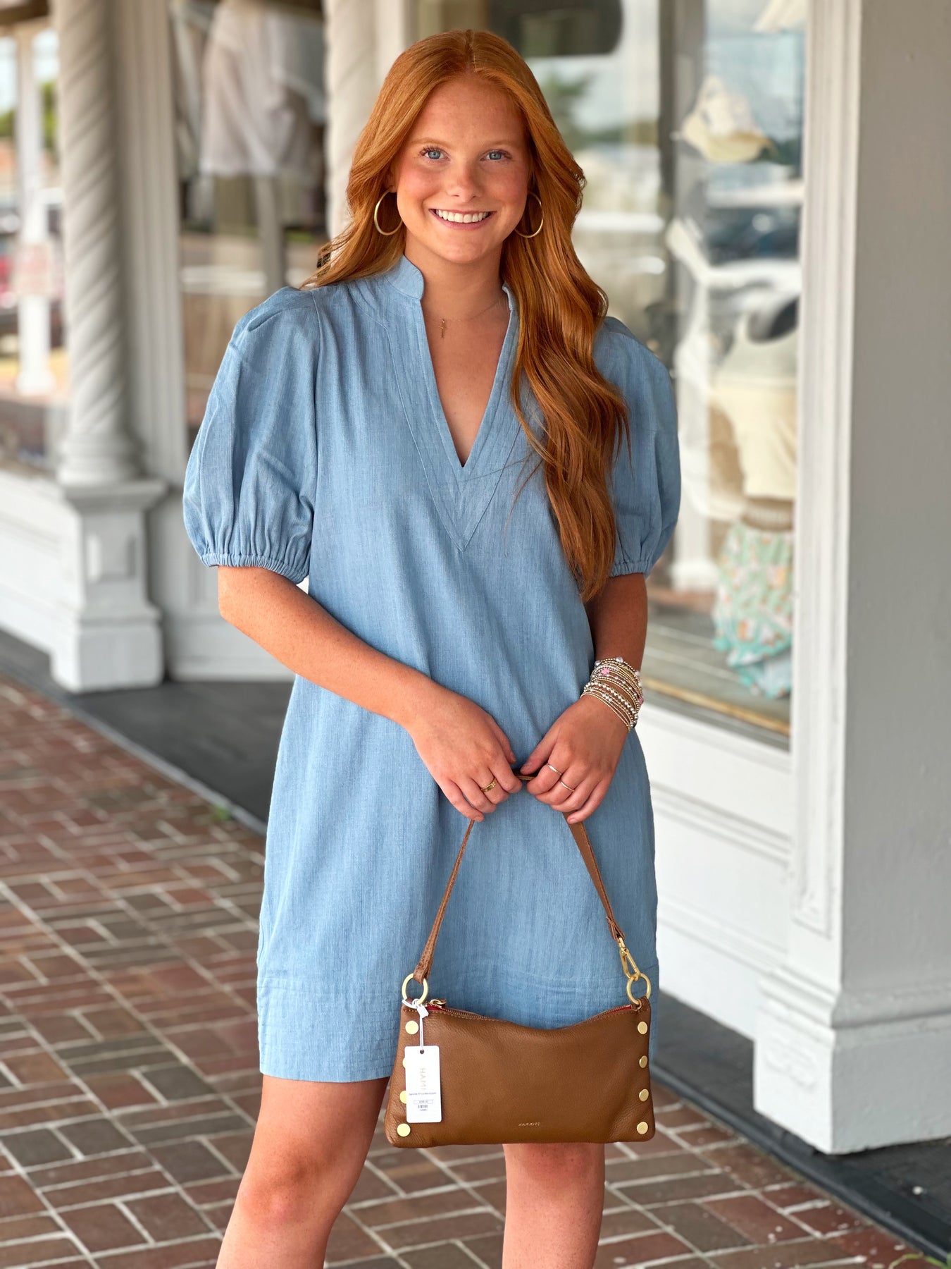 Emily Mccarthy Hampton Mini Dress in Denim Chambray
