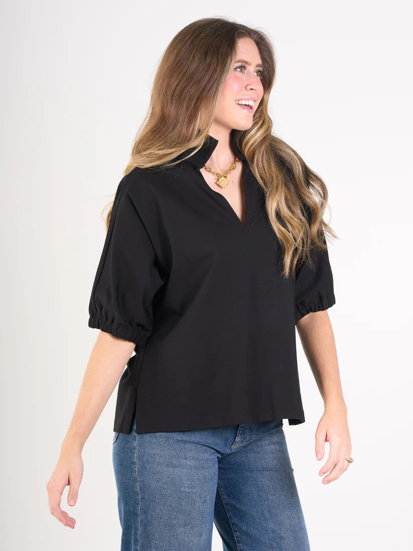 Emily Mccarthy Poppy Top in Black Cotton Poplin