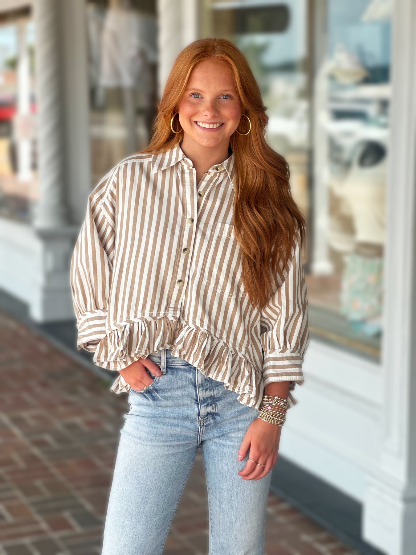 Free People Bailey Stripe Shirt in Neutral Combo OB2023769