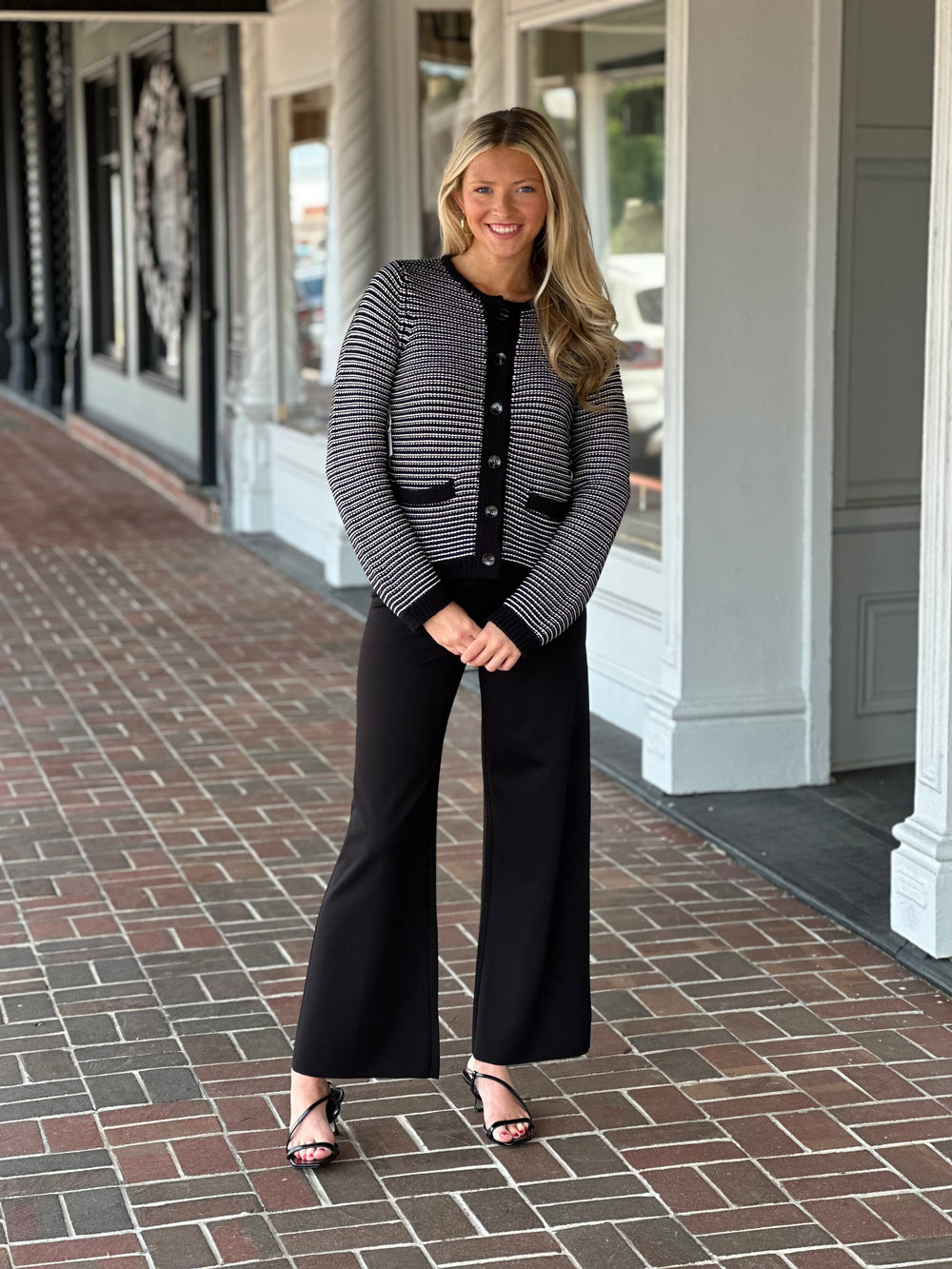 Michael Stars Kaden Crewneck Cardigan in Black/Ivory