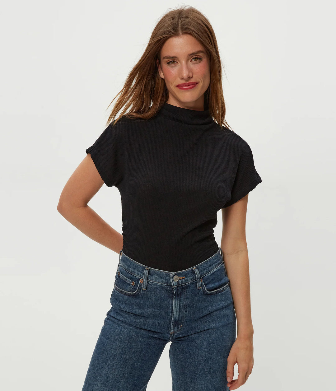Michael Stars Lara Ribbed Mock Neck Top in Black