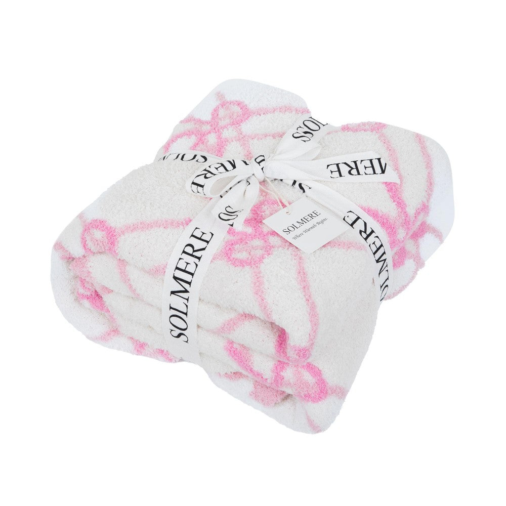 - Thoughtful Packaging – Each blanket is tied with a branded ribbon in a bow and includes two cards: one featuring the SOLMERE brand and another showcasing a high-quality image of the blanket’s print. Individually packaged