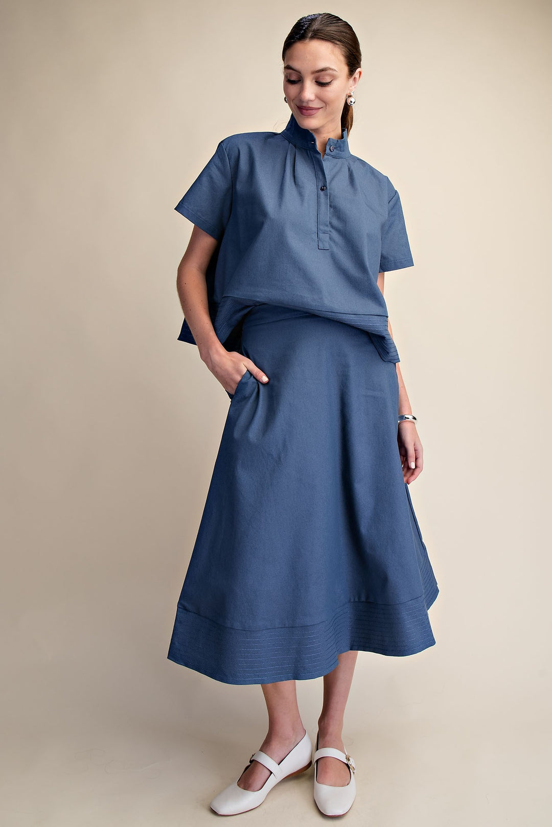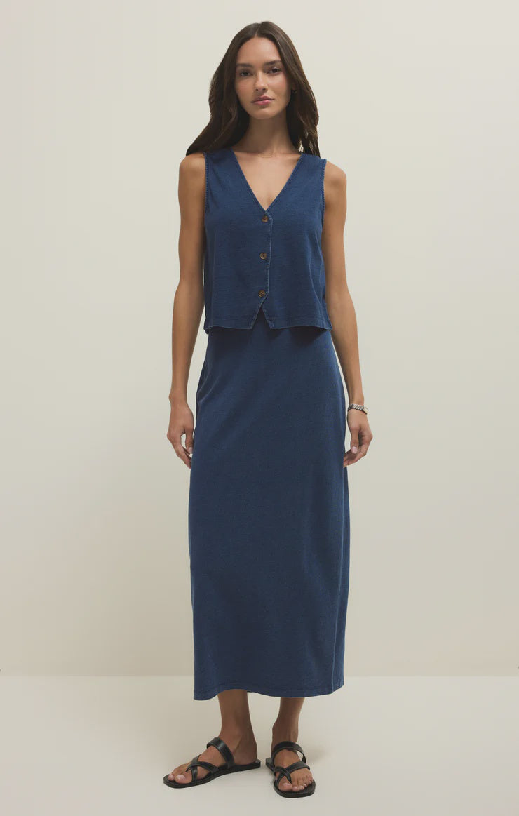 Z Supply Gail Jersey Denim Midi Skirt in Indigo