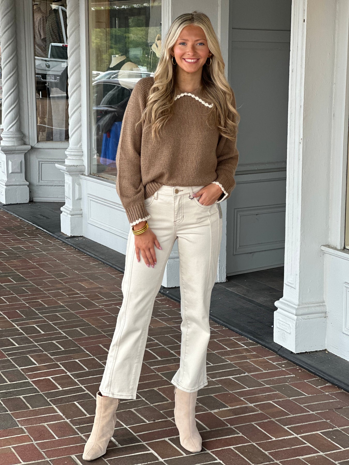 Walnut Brown Scalloped Collared Sweater 1594ETC