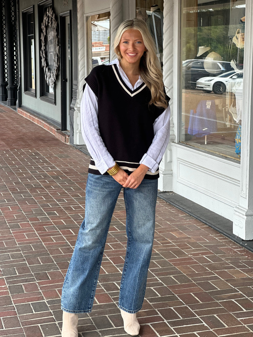 Charlie B V-Neck Fooler Yarn Sweater in Black