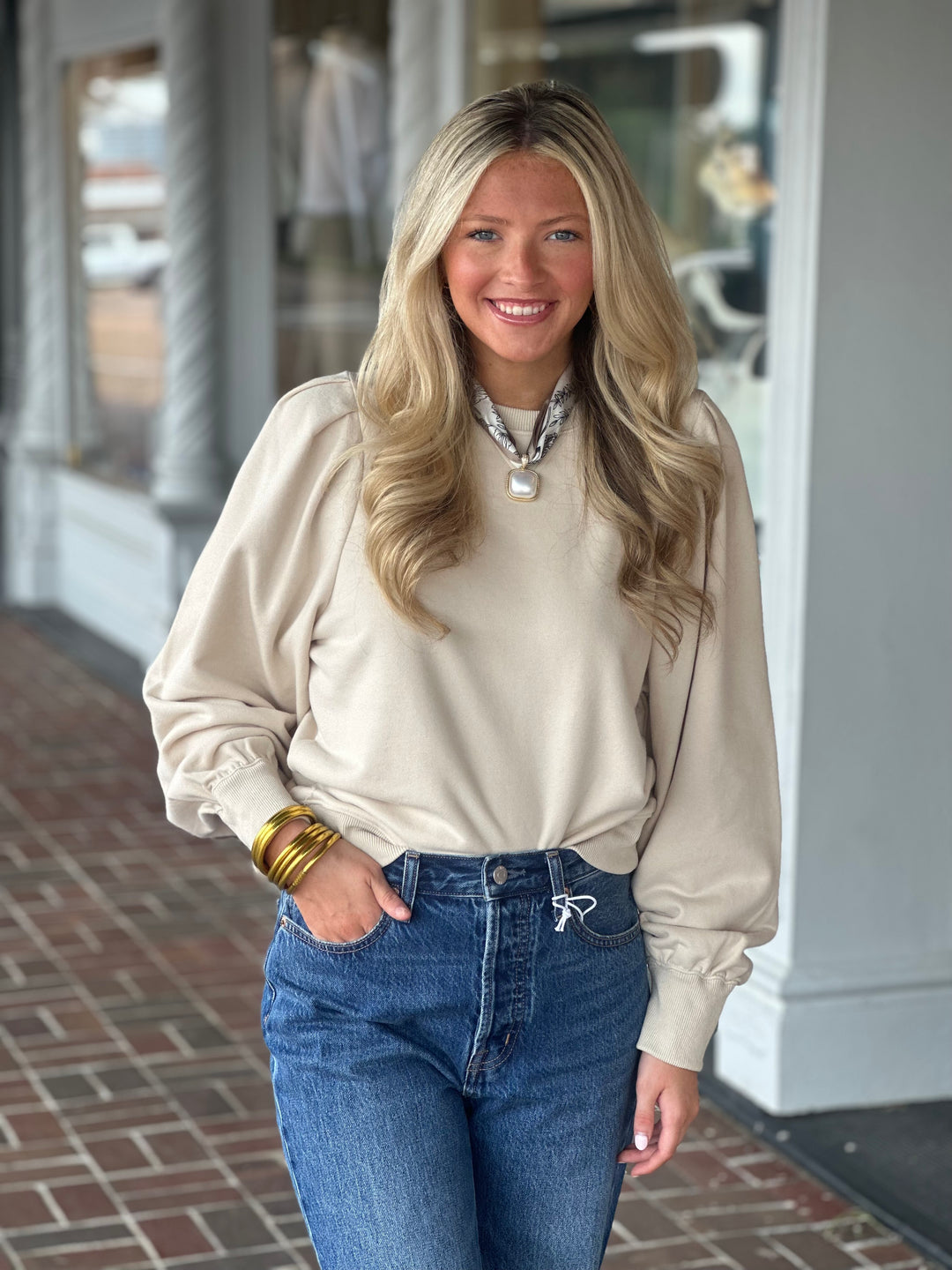 Vilagallo Knit Balloon Sleeve Sweater in Brown