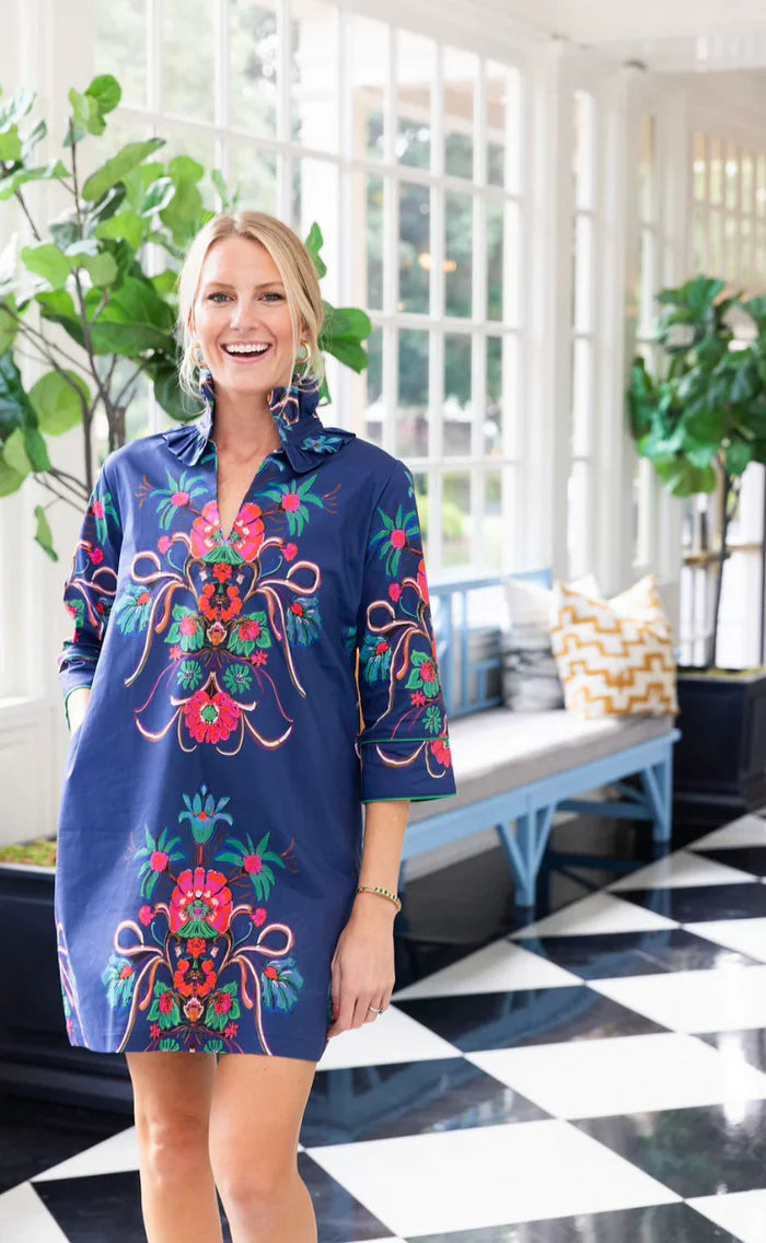Emily Mccarthy Poppy Dress in Navy Cotton Poplin