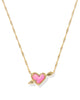 Our sweetest style gets a romantic makeover in the Ari Heart Arrow Gold Short Pendant Necklace. Set on a dainty chain, this darling pendant features an organic heart shape and dimensional arrow design, framed with our signature hoofprint detailing. Wear it with the Ari Heart Arrow Huggie Earrings for an oh-so-cute look.
